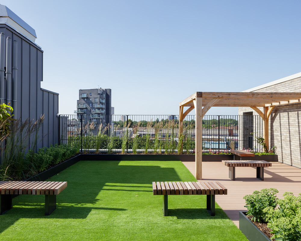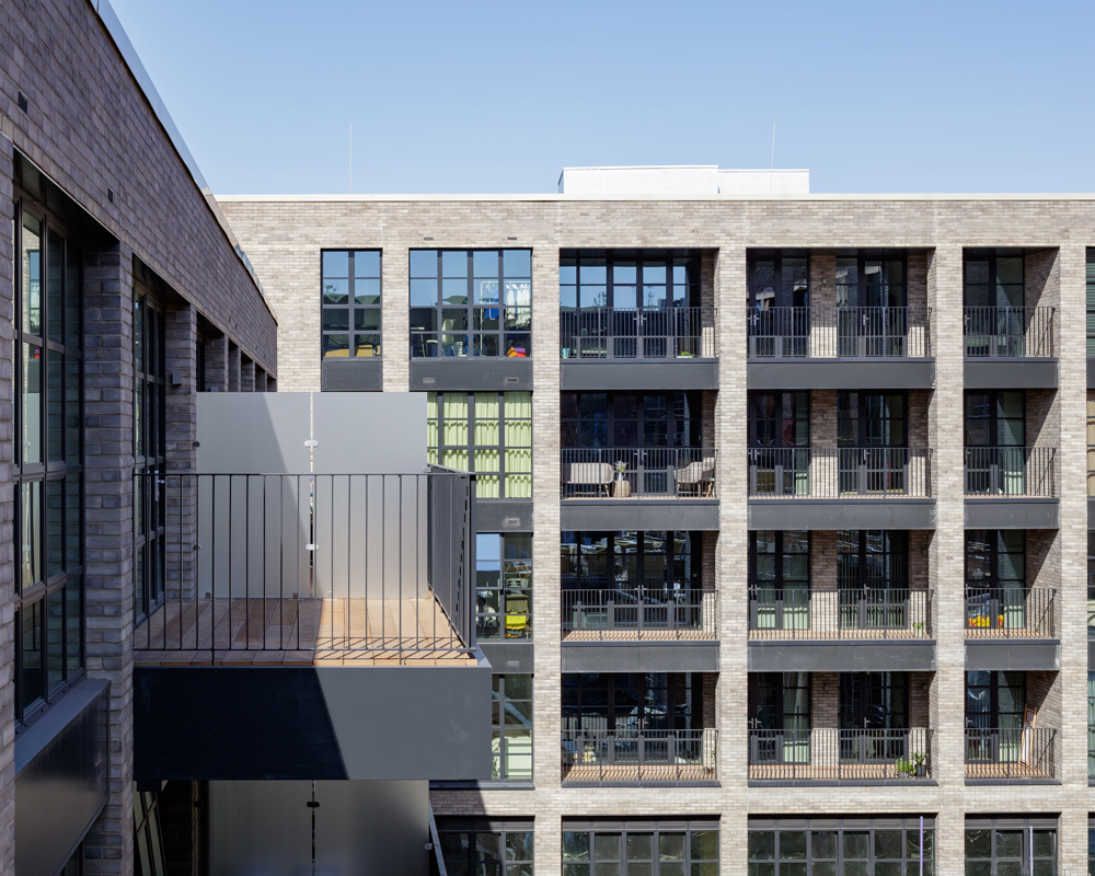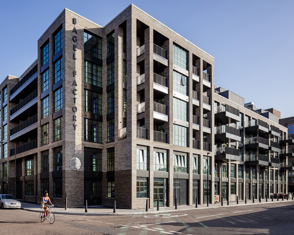We've been busy putting the final touches to our latest scheme in Hackney Wick. This mixed-use development will offer 55 apartments above two storeys of flexible workspace for small and medium creative businesses. A central café and terrace is a bustling hub for both residents and creatives, and a commercial yard at the rear is a cool, behind-the-scenes space where business tenants can meet, socialise and hold events. The building’s design takes its cue from the area’s historic warehouses, and features simple elevations of pale brick and tall windows, with the occasional gleam of a perforated metal screen. Check the sale website: The Bagel Factory.