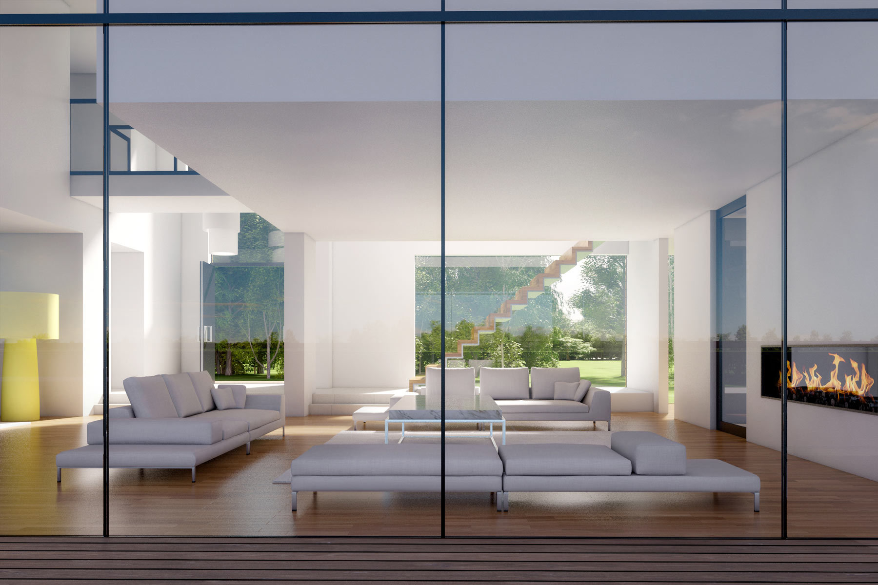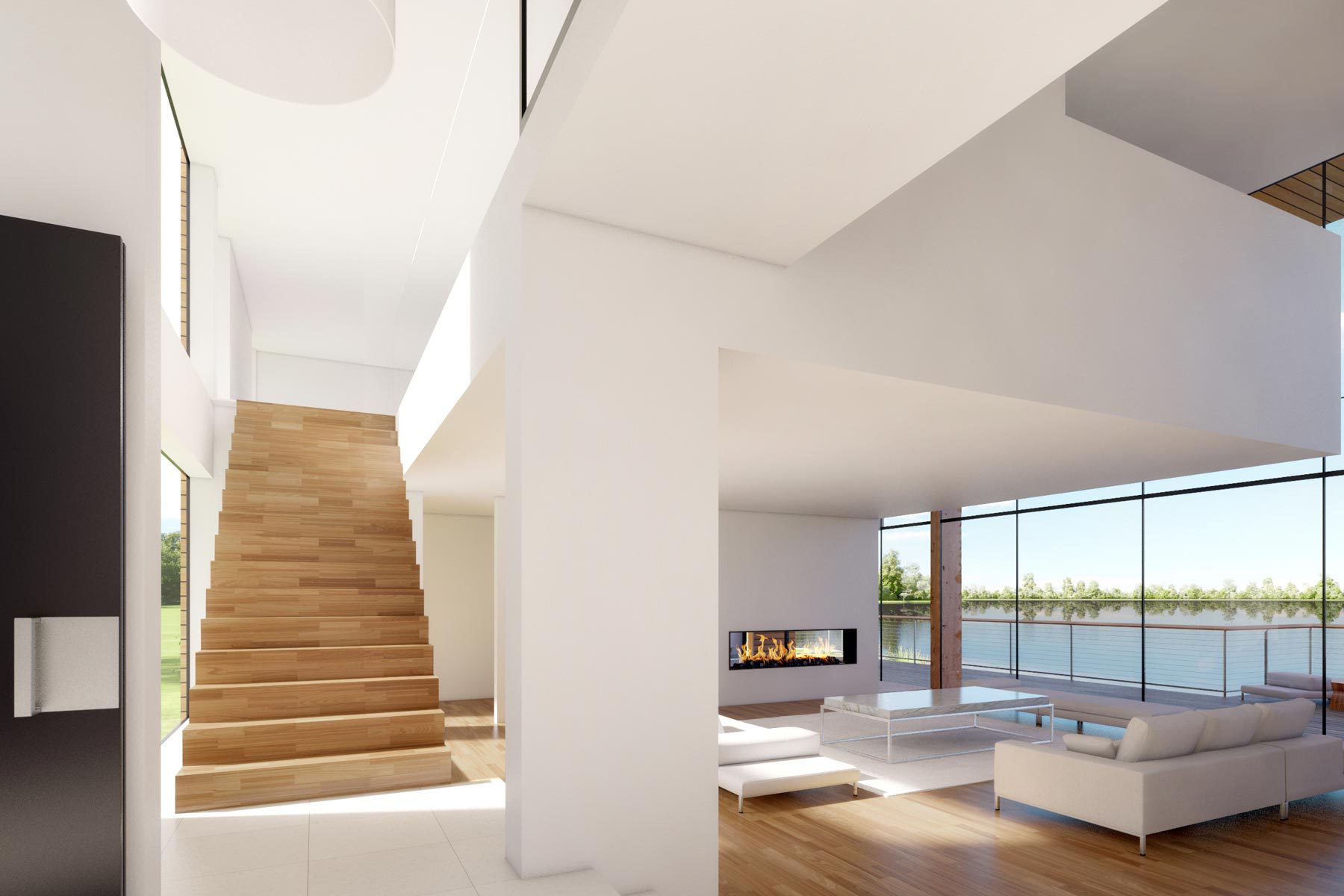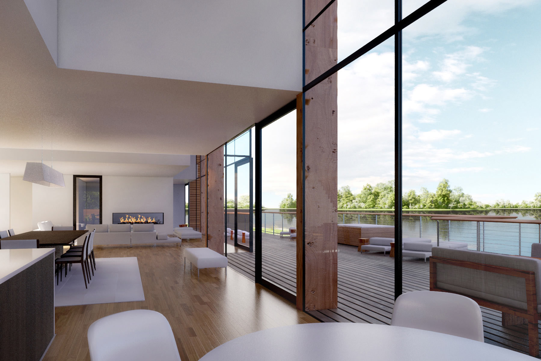 Our third project at The Lakes is a redesign of a house by Yoo. The buyer of this lakeside house wanted a more expansive living space and views of the garden, not just the lake. The solution was to break up the restrictive box, create double and triple heights and open the house to the environment. The result is more fluid and visually interesting. We asked the client what he would like to see from his lounge or bedroom, and created new views that make the most of the surroundings.