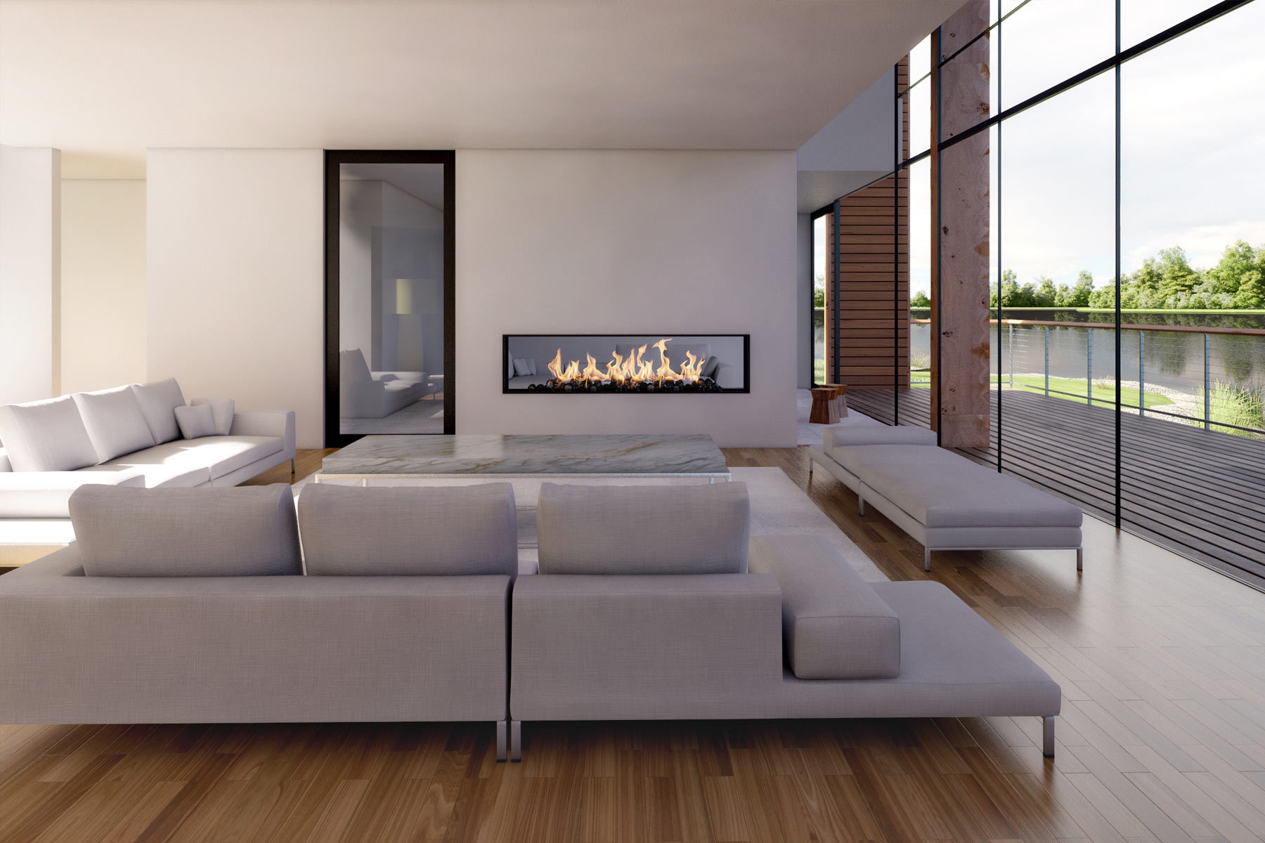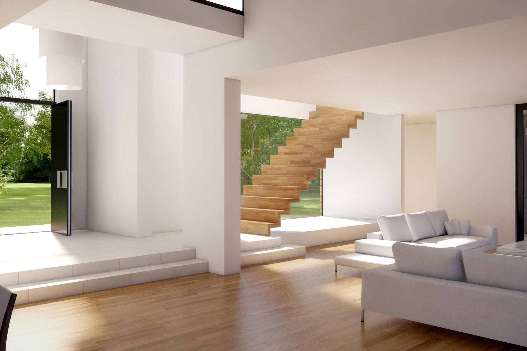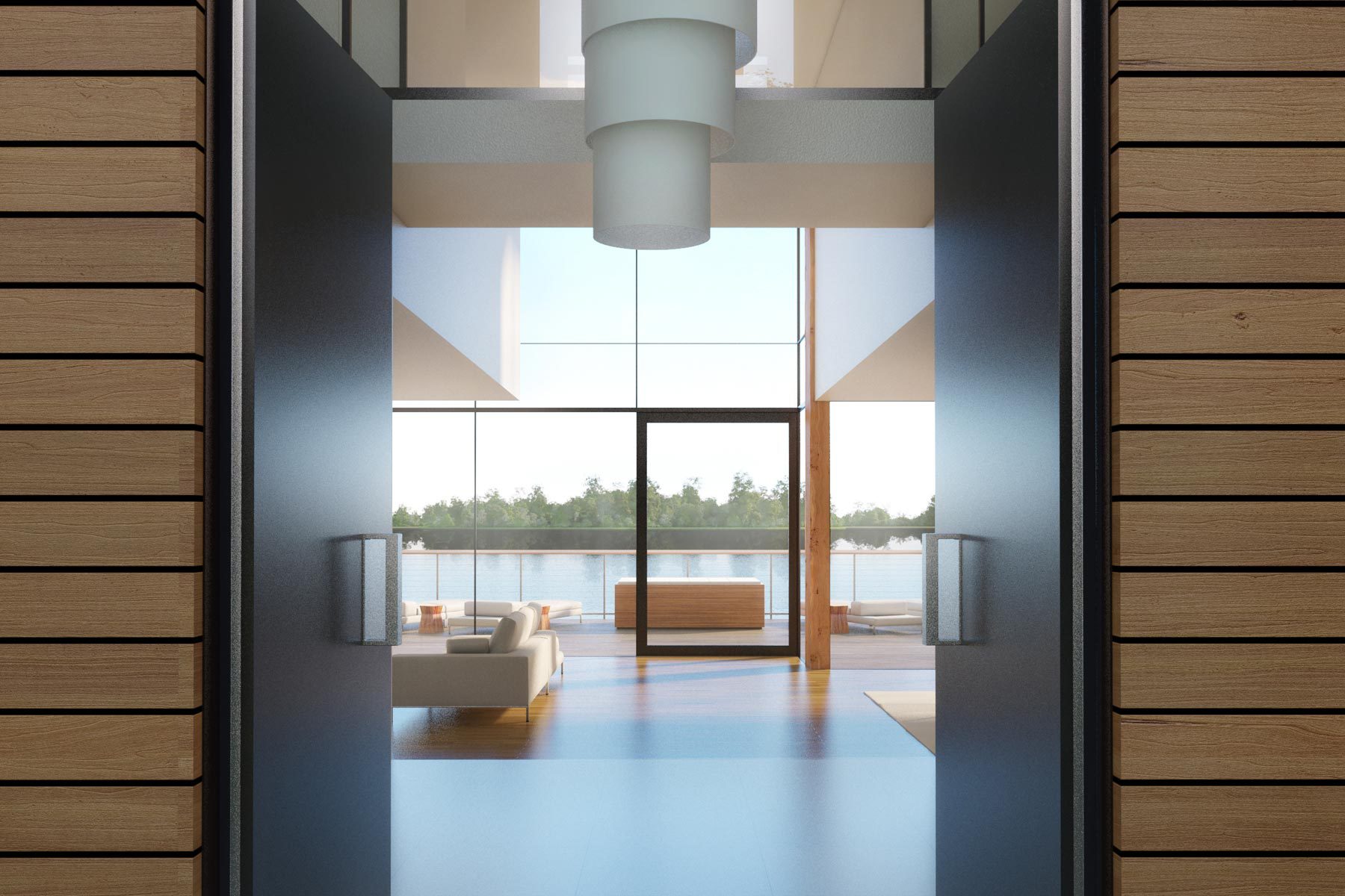 Our third project at The Lakes is a redesign of a house by Yoo. The buyer of this lakeside house wanted a more expansive living space and views of the garden, not just the lake. The solution was to break up the restrictive box, create double and triple heights and open the house to the environment. The result is more fluid and visually interesting. We asked the client what he would like to see from his lounge or bedroom, and created new views that make the most of the surroundings.