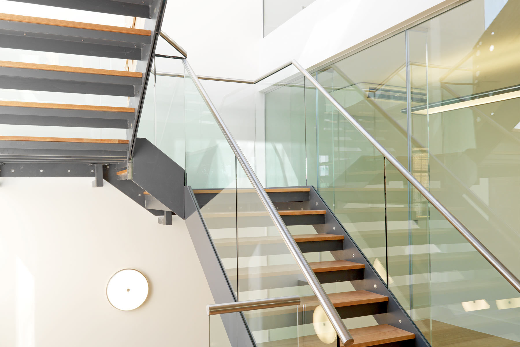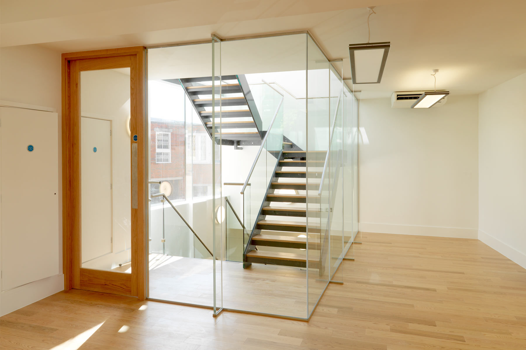 This project had a very short timeframe for build and fit-out. The Victorian office building was refurbished and a two-storey glass extension was built to bring light into all areas. The company’s staff had previously worked on one large open-plan level, so a secondary glazed stairway was created to visually link the floors. The work was phased for maximum efficiency. In first phase, new steelwork was installed, mechanical plants, generator and services were installed, and the fit-out was drawn. In the second, the extension was built and all finishes were carried out. Staff moved in just as works were completed.