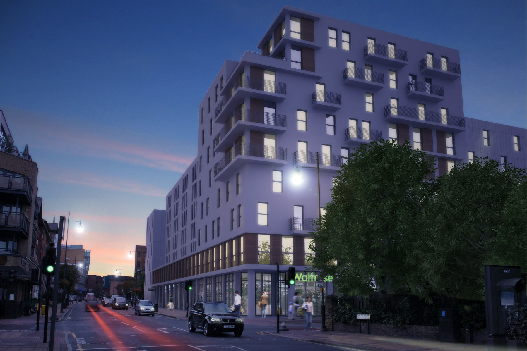 These proposals for a local developer showed how three corner plots could come together and form a large mixed-use scheme. The brief included a large retail unit on the ground floor, a three-star hotel, an office block and apartments. The aim was to create a building that worked holistically, was functional and attractive, and would convince local planners. The challenge was to find a language that would wrap it all together. The design began with the ground floor supermarket, car parking and fire exits, and progressed floor by floor to accommodate all the required elements. The supermarket has a long glass frontage, the hotel rooms have smaller windows and the apartments have balconies and sliding doors.